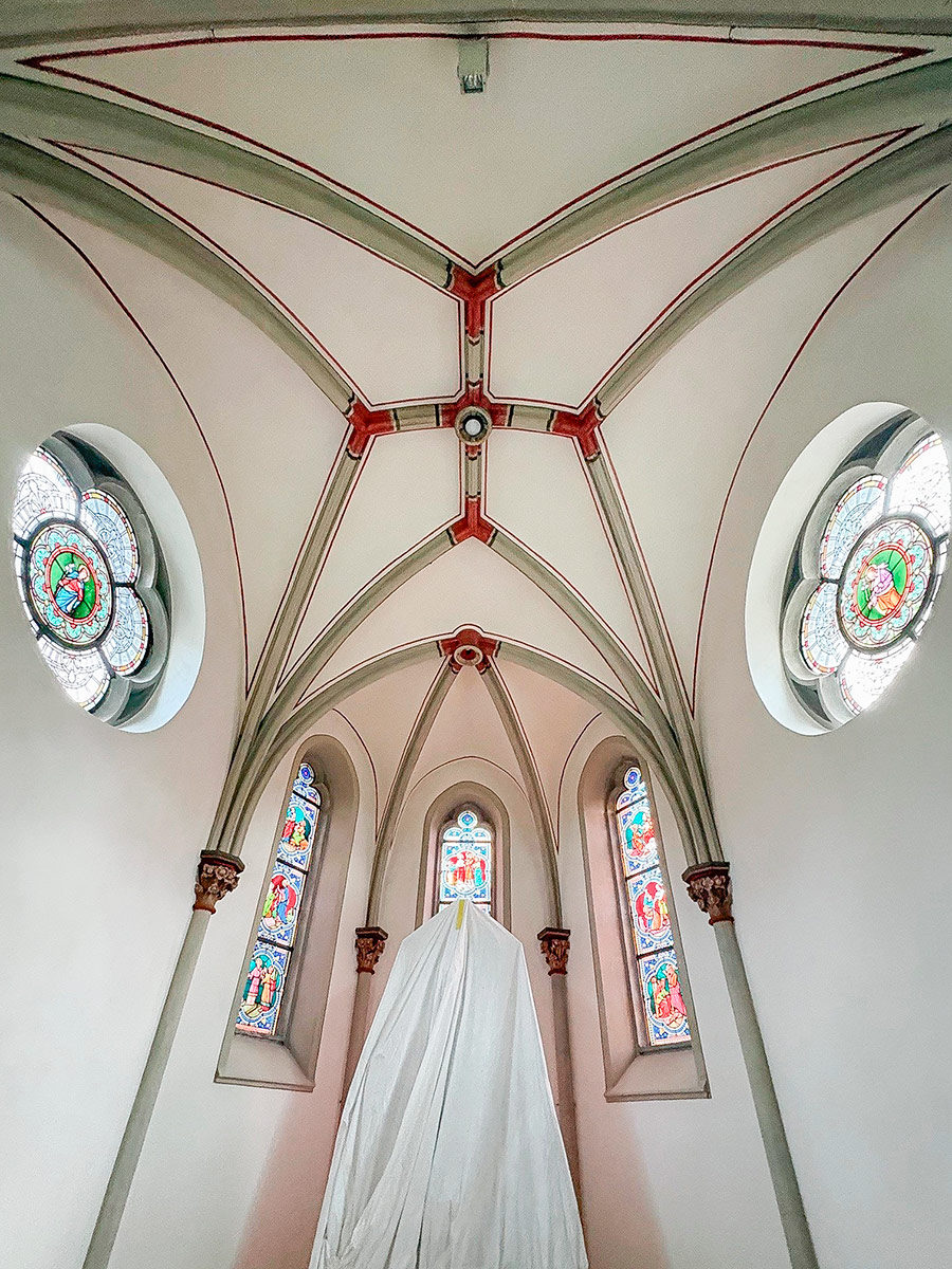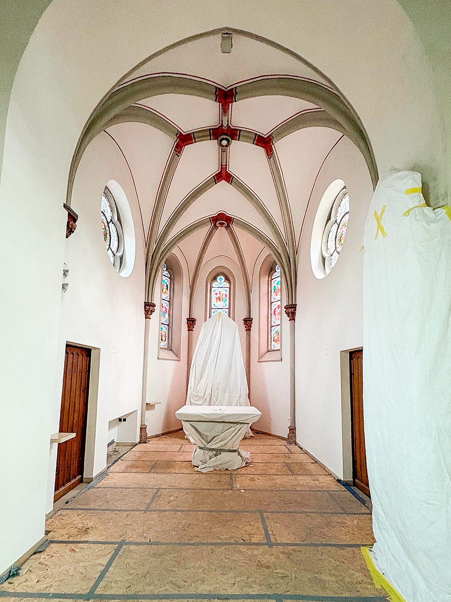 Nach der letzten Renovierung aus dem Jahr 2004 war – aufgrund der starken Verschmutzungen – eine Innenrenovierung der Kirche St. Johannes der Täufer in Venne-Senden erforderlich. Sämtliche Reinigungsarbeiten wurden mit unseren bewährten Trockenreinigungsschwämmen ausgeführt. Putzschäden, Putzergänzungen und Anstriche wurden mit Altmannsteiner Grubenkalk durchgeführt. Die Arbeiten wurden von Juli 2025 bis Januar 2026 erledigt.